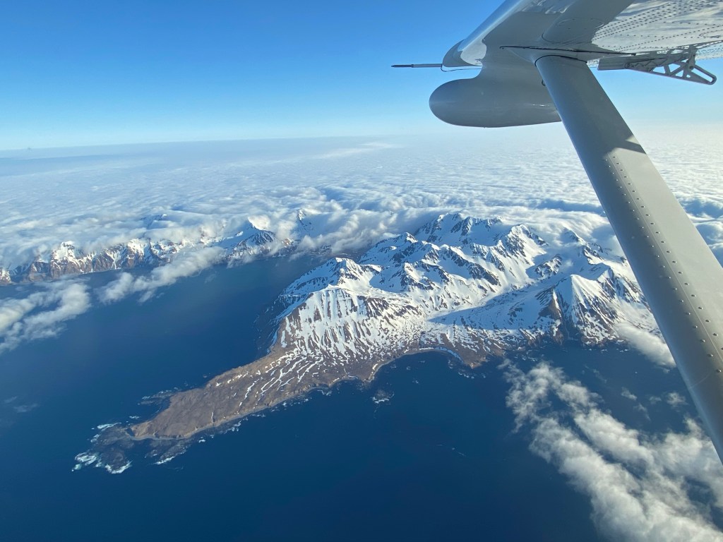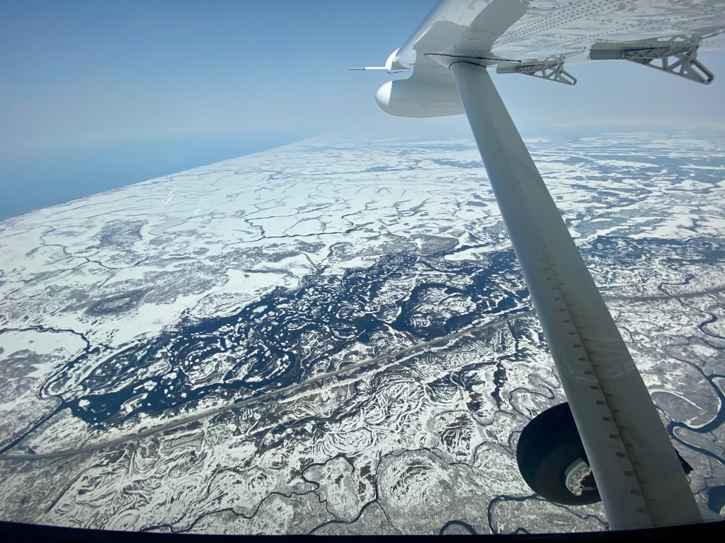 It was interesting- as we flew today I was reading the book Alaska by James Michener – the stories were all about Russian explorers and fur traders doing this exact route in the mid 1700’s