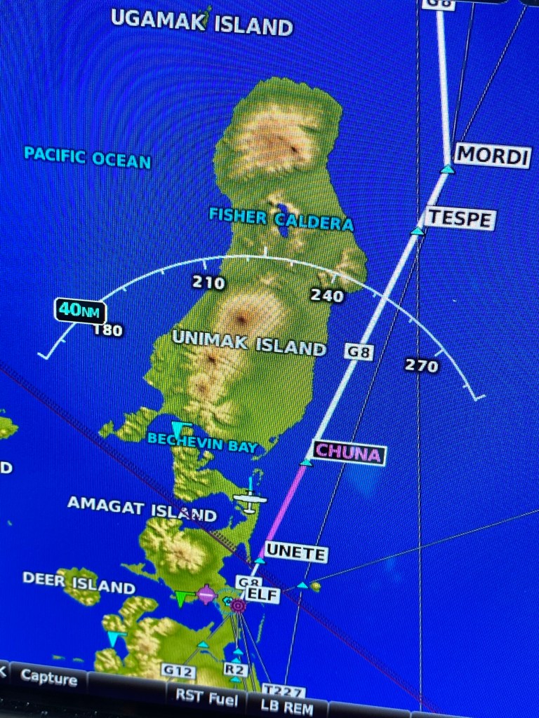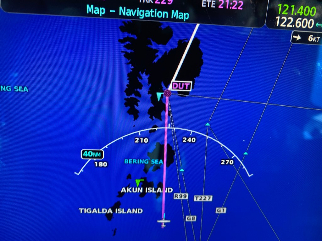 About an hour and a half out – we received the report that the weather was deteriorating in Adak – a mile and a half visibility and trending downward and alternates were not great so we made the decision to turn back to Dutch Harbour for the night