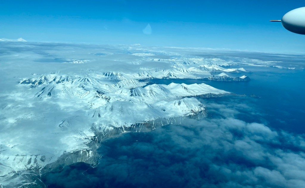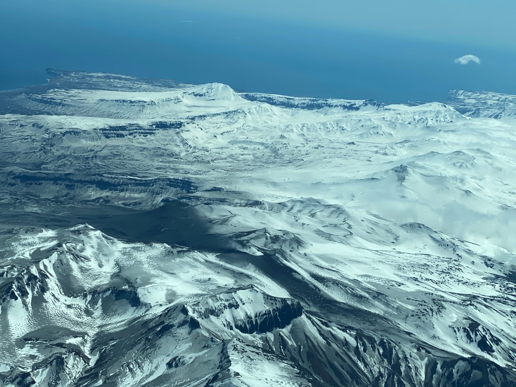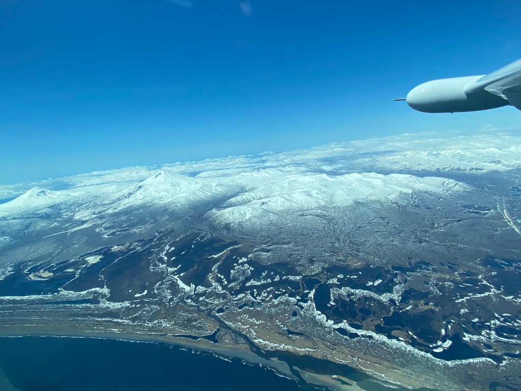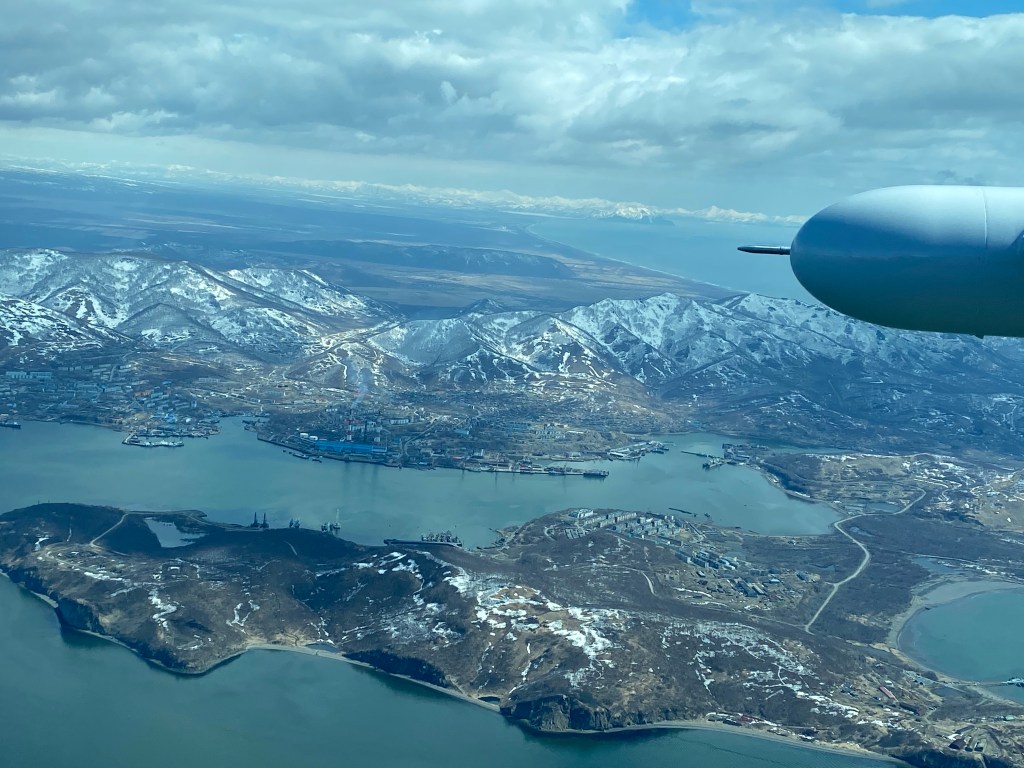 We flew the 8 hour flight across the Pacific above the clouds until we reached the coast of Kamchatka Peninsula