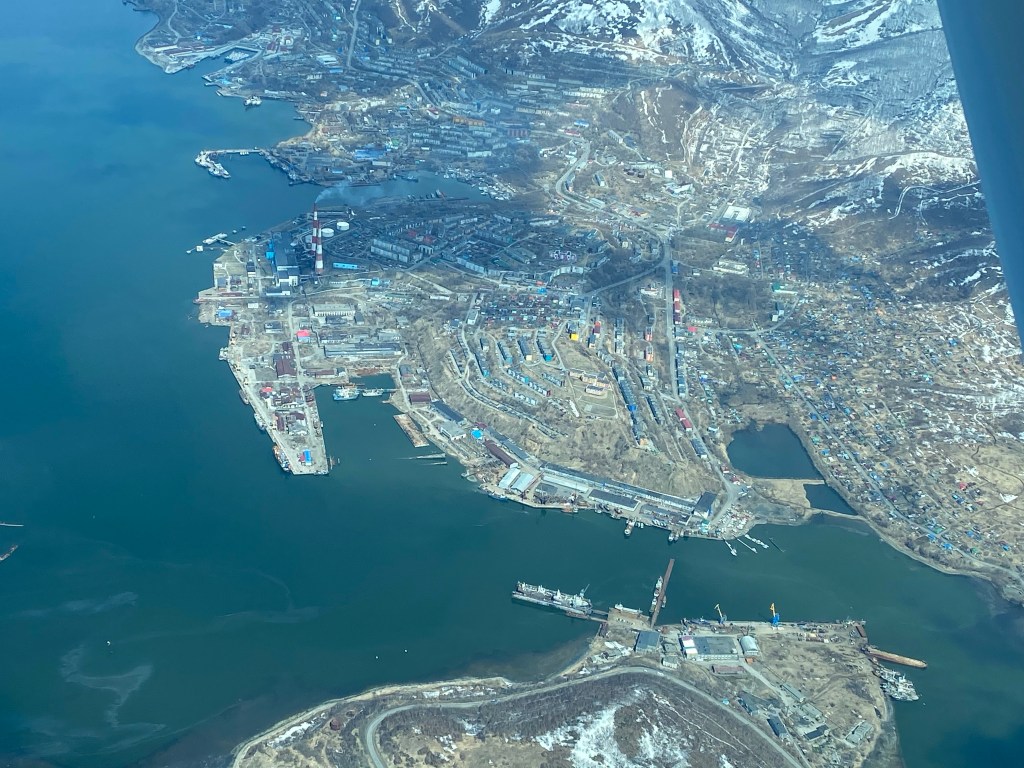 Departing – notice the classic Russian apartment blocks to the left of the picture. Up until 1989 Kamchatka was closed to civilians as it was a military zone