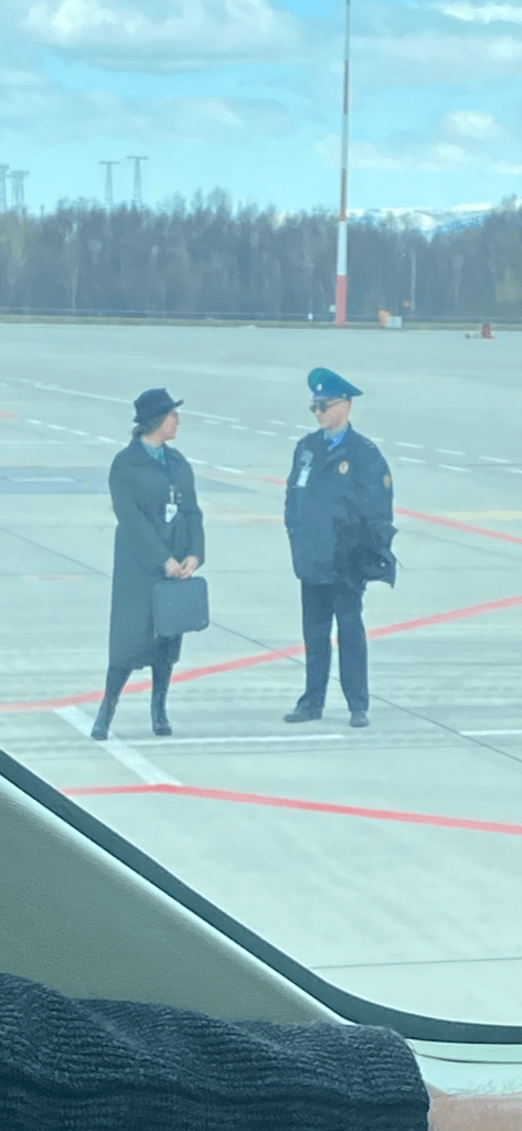 I snapped a quick picture of the airport personal who met us. Whenever we stop in Russia I notice and appreciate the classic uniforms people wear – and the bright red lipstick