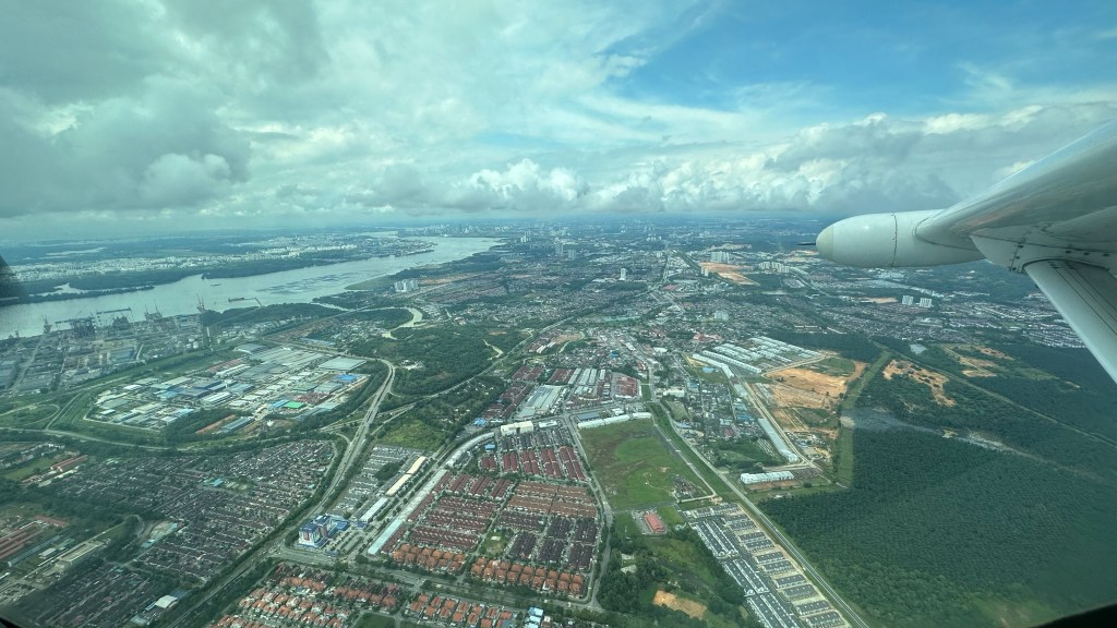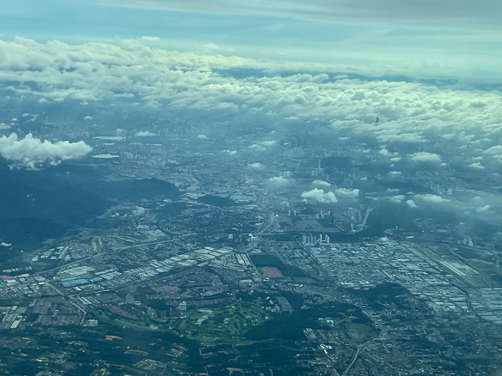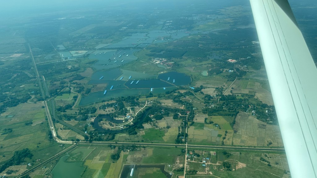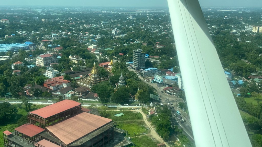 Flying over Yangon and a large pagoda. Myanmar is known for its pagodas. Pagodas are stupas that typically house Buddhist relics and are all over Myanmar’s landscape.