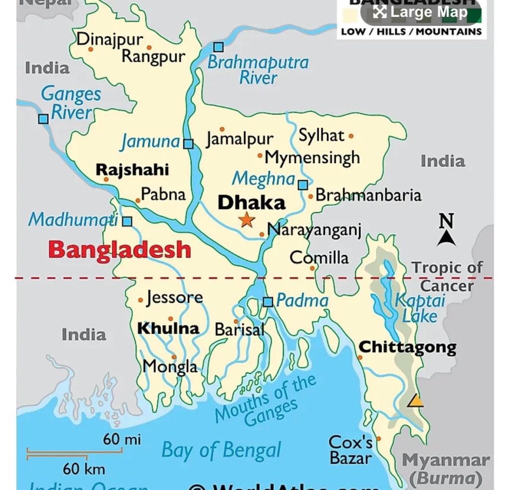 A map of Bangladesh which I actually should have included earlier – just to get an idea of the country (not to mention the small size of the country – in light of a population of 166 million people.