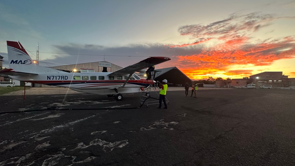 Last fuel up before our leg to Kinshasa, Congo. Today we started with sunrise picture and ended with a sunset picture:)