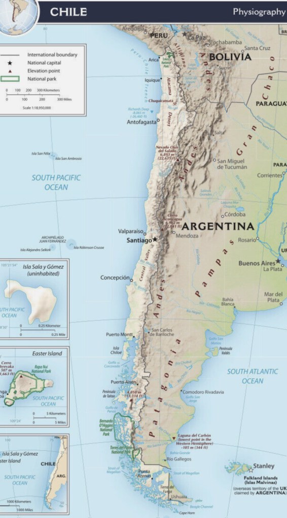 spans 600-700 miles from the north to south of Chile.